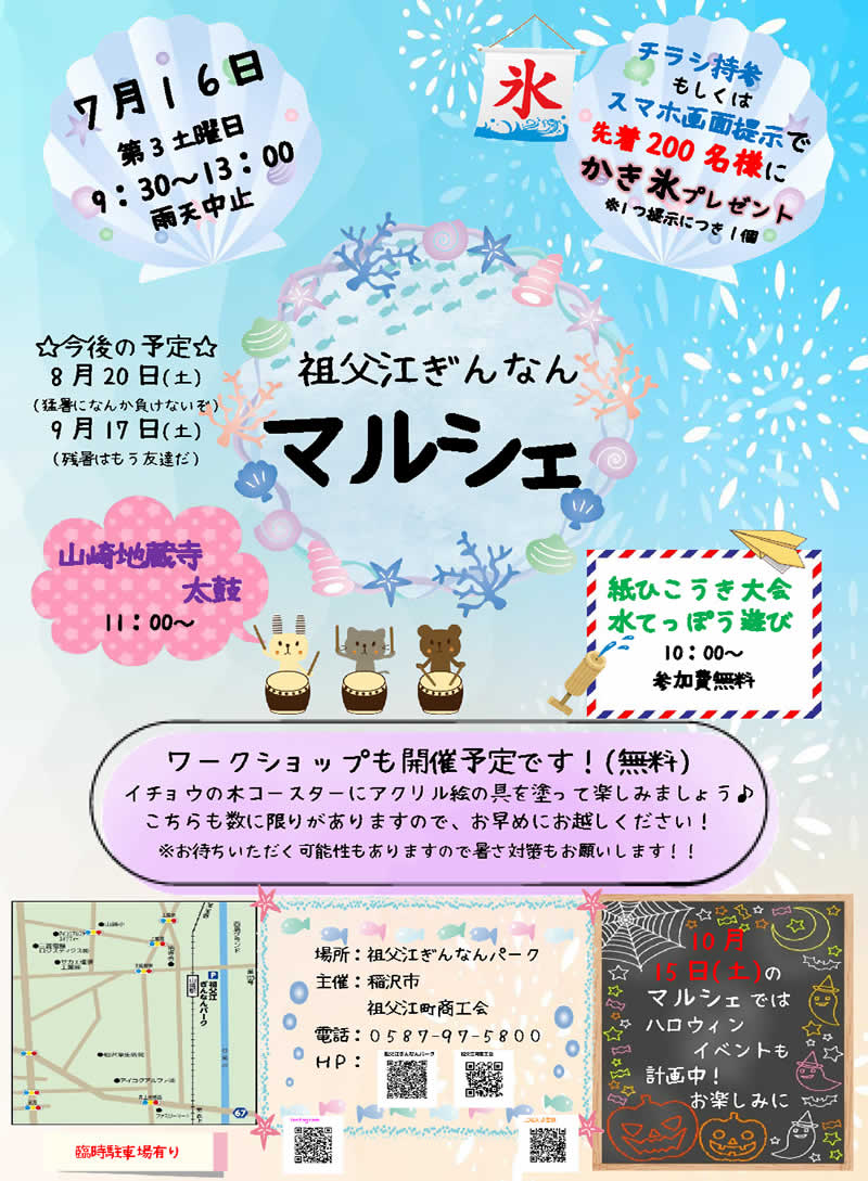 「新型コロナウイルス感染拡大防止の観点から7月16日(土)に予定しておりました「祖父江ぎんなんマルシェ」は中止となりました。」